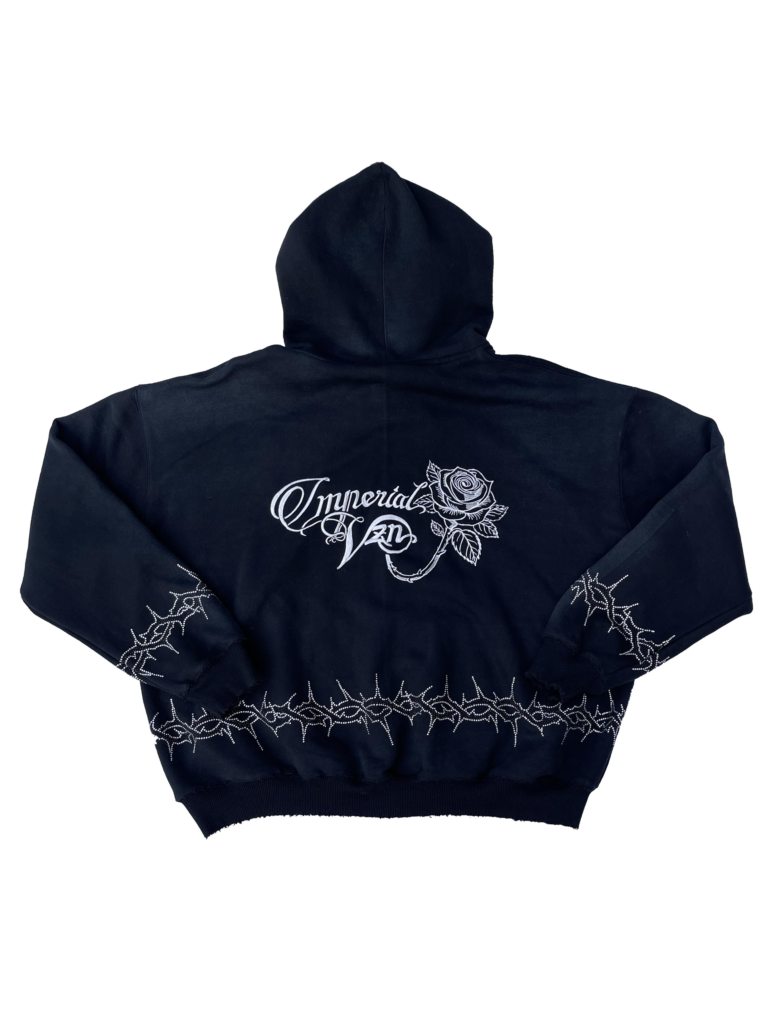 Elevate your everyday style with the Imperial VZN THORN$ Sweatsuit. Designed for those who move with purpose, this set blends comfort and attitude with a sleek silhouette that will get you noticed anywhere. Crafted from premium cotton that is soft yet durable with premium rhinestone crystals throughout. Bold branding to give it that statement-making edge, while that relaxed fit insures effortless wear. This sweatsuit was designed to keep you looking stylish from day tonight and it’s so comfy you could even sleep in it!